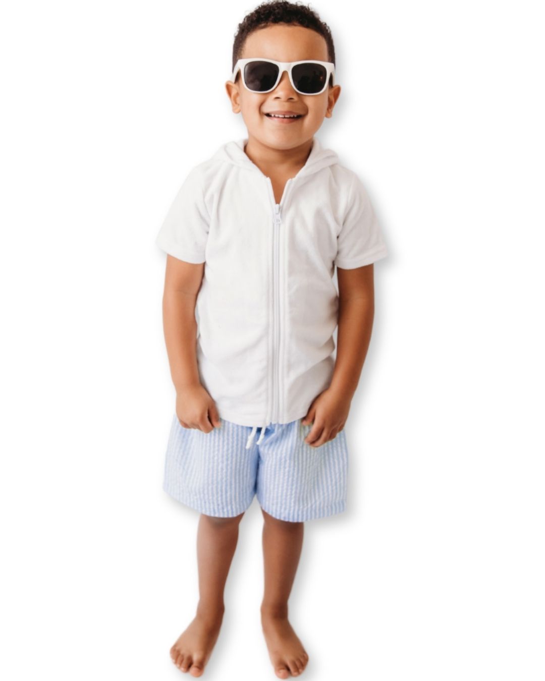 Gear up for water adventures with our comfortable and practical boys' hooded terry cloth swim cover-up! Perfect for drying off quickly after swimming lessons, beach days, or pool time, this absorbent terry robe features a cozy hood, easy-to-use closures, and convenient front pockets for stashing goggles or small toys. Keep him warm and ready for the next adventure!